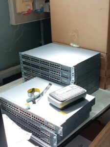Este Miércoles (no lunes jajajaj), comenzamos el día, configurando los Switches que cogimos la semana pasada del Campus de la ONU en Turín, poniendo lo básico, configurando el bitrate, para entrar a hacer el Setup, y luego poder ponerle IP, entre más cosas para acceder mediante interfaz web:
