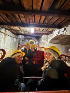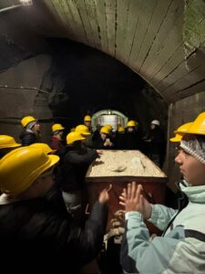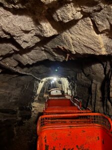Després d’equipar-nos amb els cascs grocs i fer un breu passeig, hem pujat a un vagó que anys enrere utilitzaven els treballadors per a arribar al lloc on estaven extraient els minerals  i hem pogut observar com es feia aquest treball tan dur.