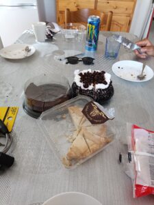 Llegó el cumpleaños de Kevin. Juan y yo le preparamos una sorpresa para la comida, le compramos 3 tartas. Estuvimos un rato pasándolo bien y luego nos fuimos a jugar a futbol. Por la noche nos duchamos, cenamos y al final Kevin y yo nos fuimos a una fiesta.