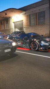 De nuevo a trabajar y la rutina diaria. Aquí en italia los coches tienen un poco menos de reglamentos que en España y yendo a dar una vuelta vimos un deportivo con las ruedas como si fuera una ruleta de el casino, Robin el de la película de Batman en el lado derecho y luces rojas. Tenía algunos detalles mas, os lo dejo para que lo veaís en la foto.